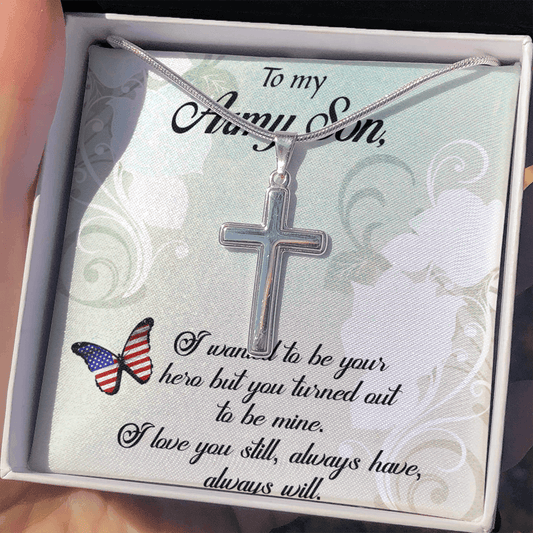 Gift For Son - Never Forget My Love - Cross Necklace With Message Card - Son Gift For Birthday, Christmas, Special Occasion From Mom, Dad