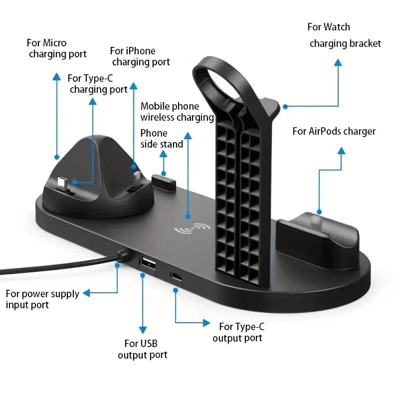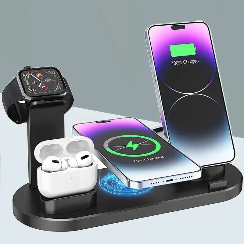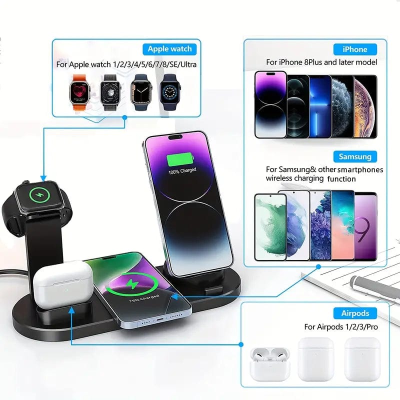 - Efficient Charging: 15W wireless fast charger station charges your iPhone 6/7/8/X/XS/XR/11/12/13/14 Pro Max, Airpods, Samsung, XIAOMI, and VIVO devices quickly and efficiently.
