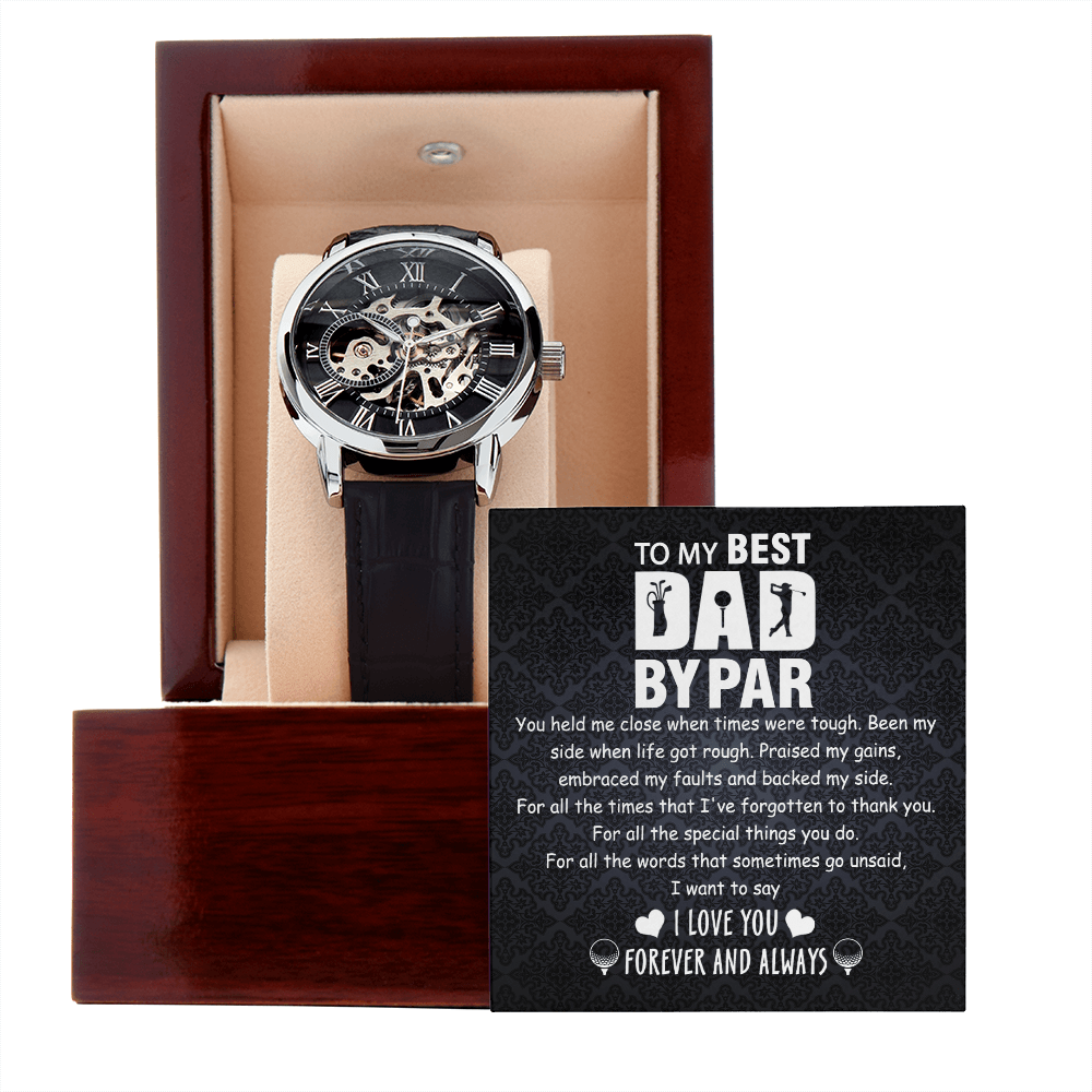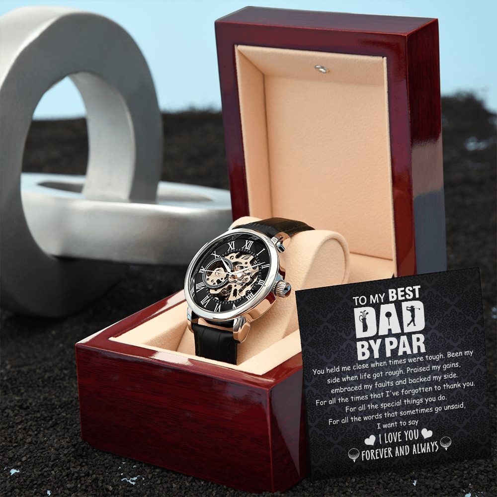 Father's Day Gift For Golf Dad - Best Dad By Par - Openwork Watch - Message Card Gift From Son, Daughter