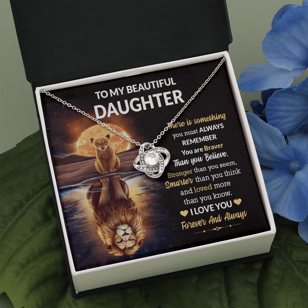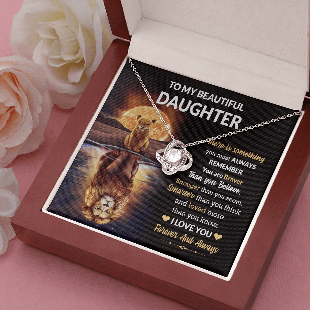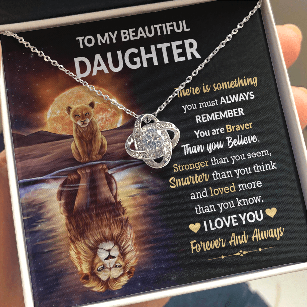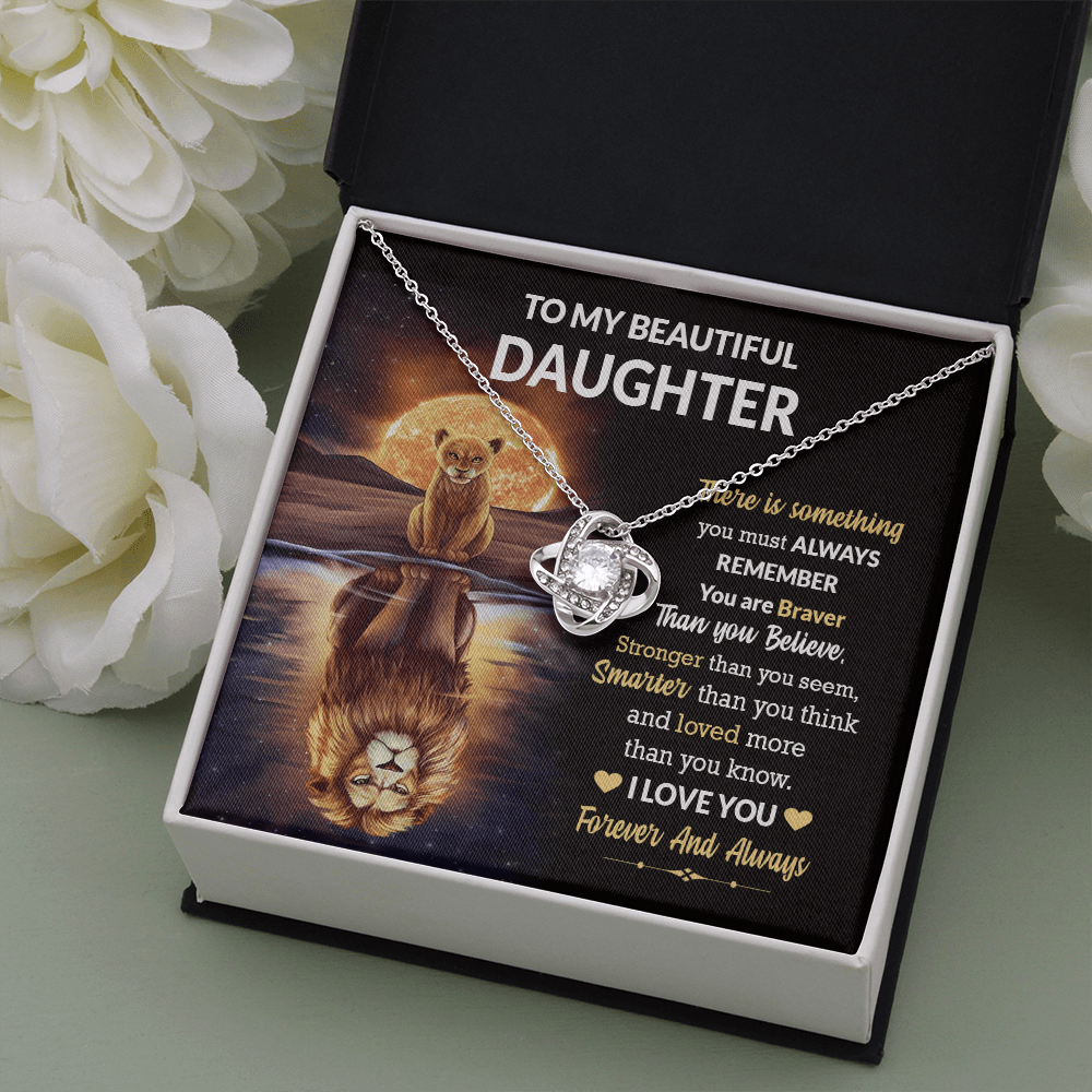 Gift For Beautiful Daughter - You Are Braver Than You Believe - Love Knot Necklace Message Card Gift From Mom, Dad, Father, Mother For Birthday, Graduation, Wedding