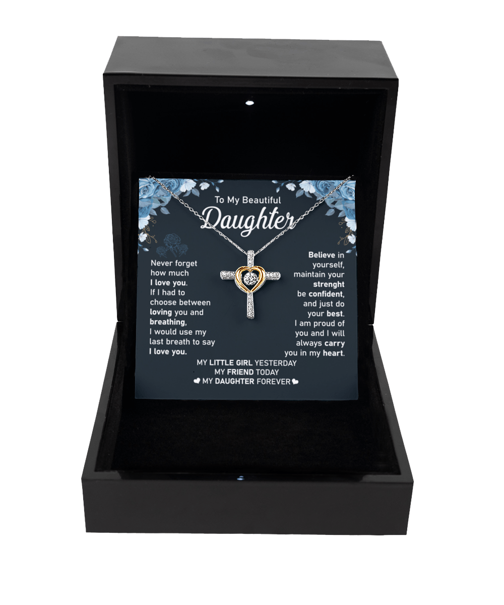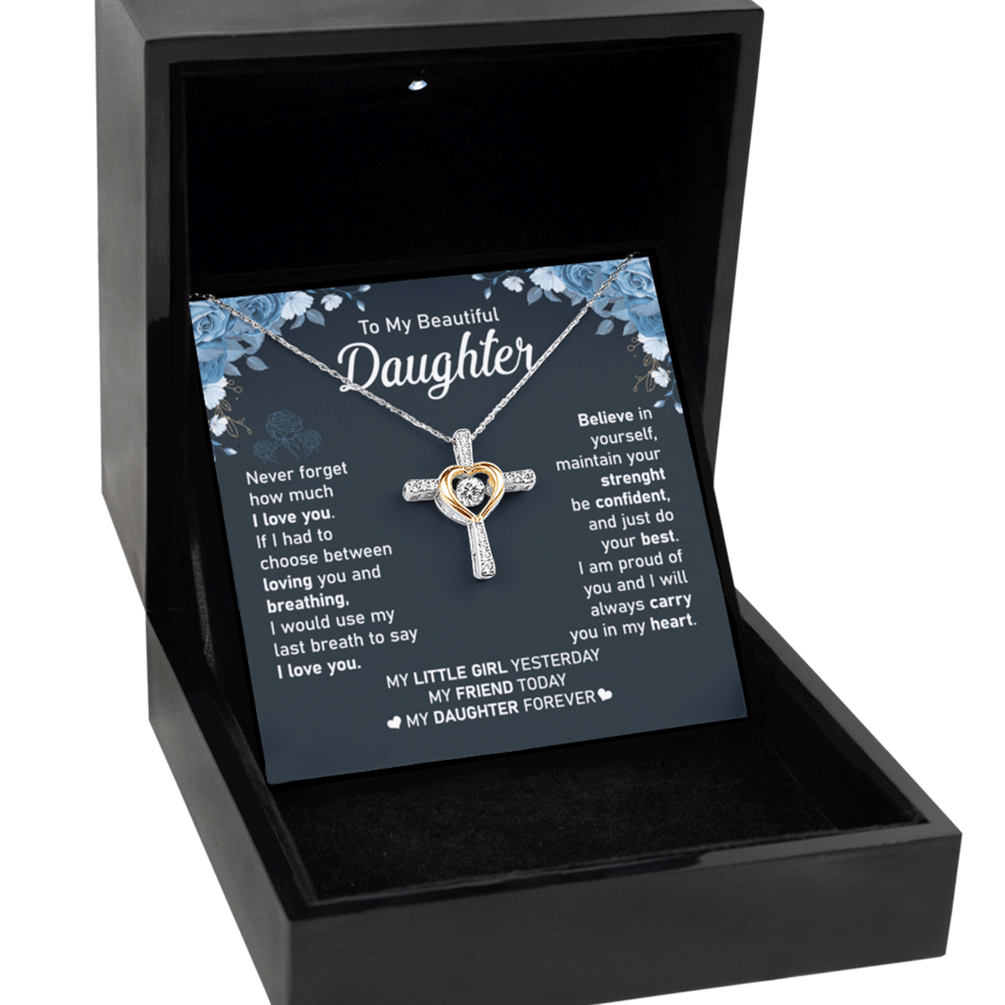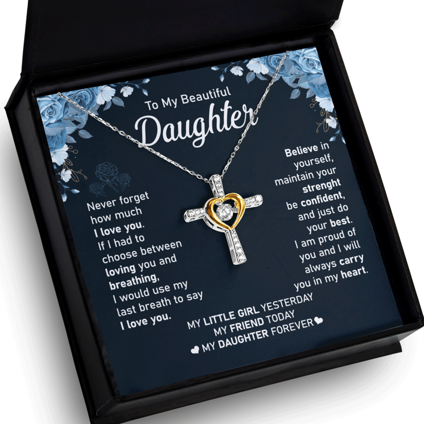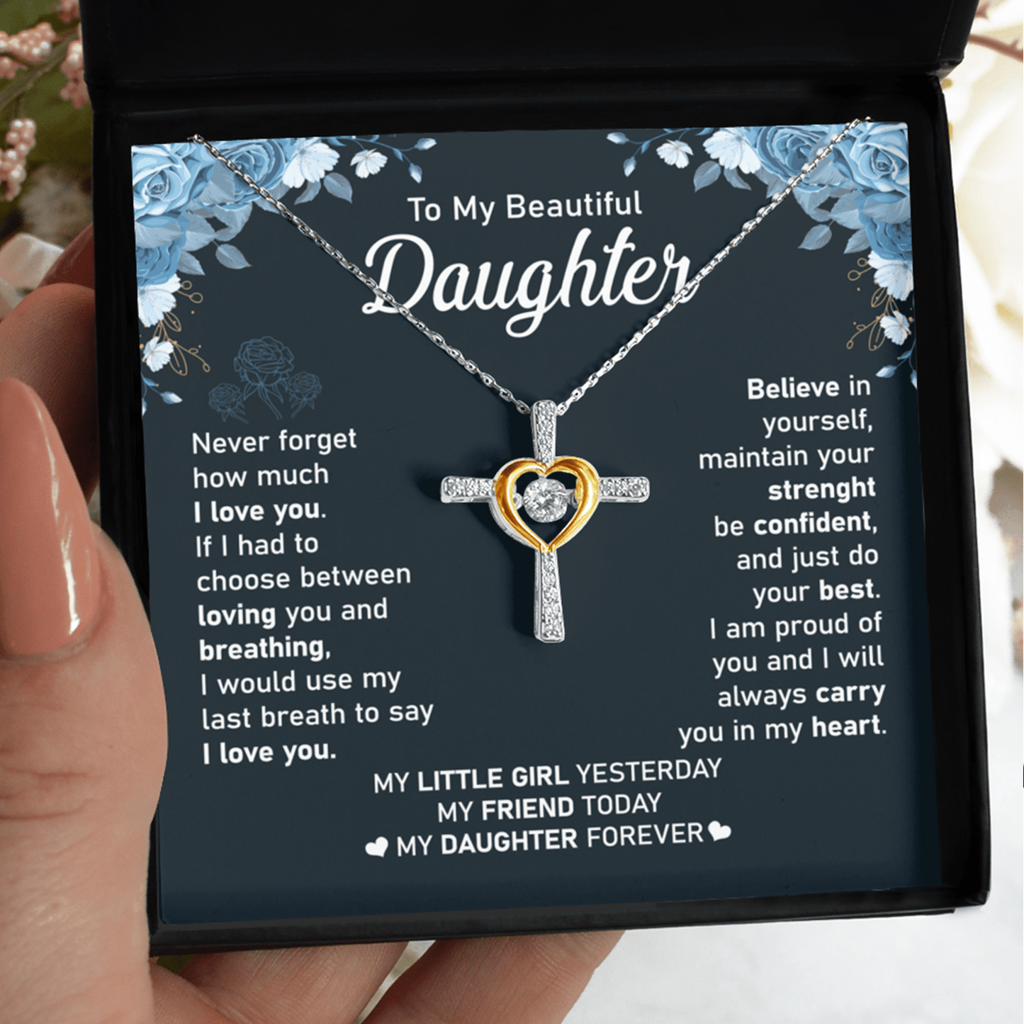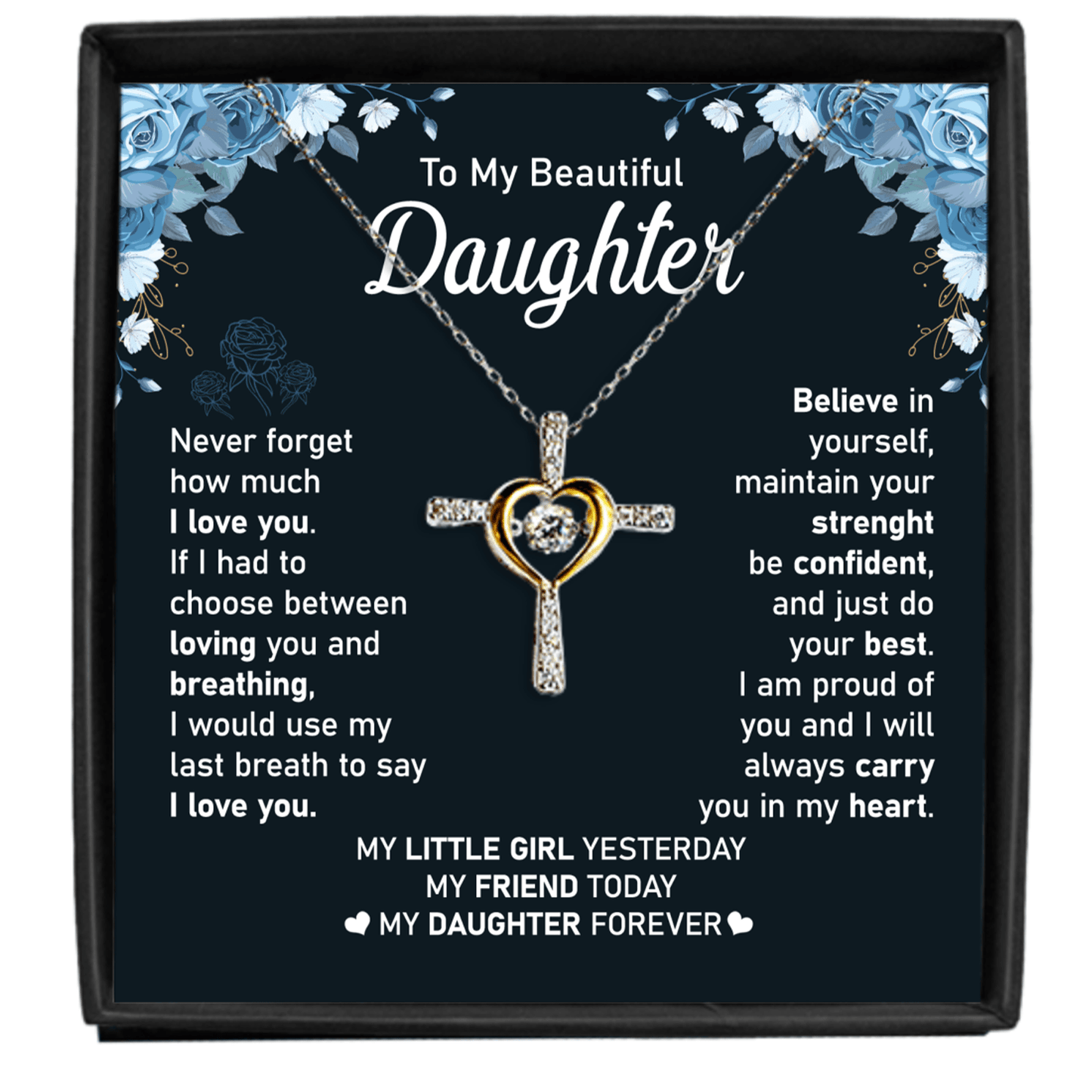 Gift For Daughter - Believe In Yourself - Cross Dancing Necklace With Message Card - Gift For Birthday, Christmas From Dad, Father, Mom, Mother