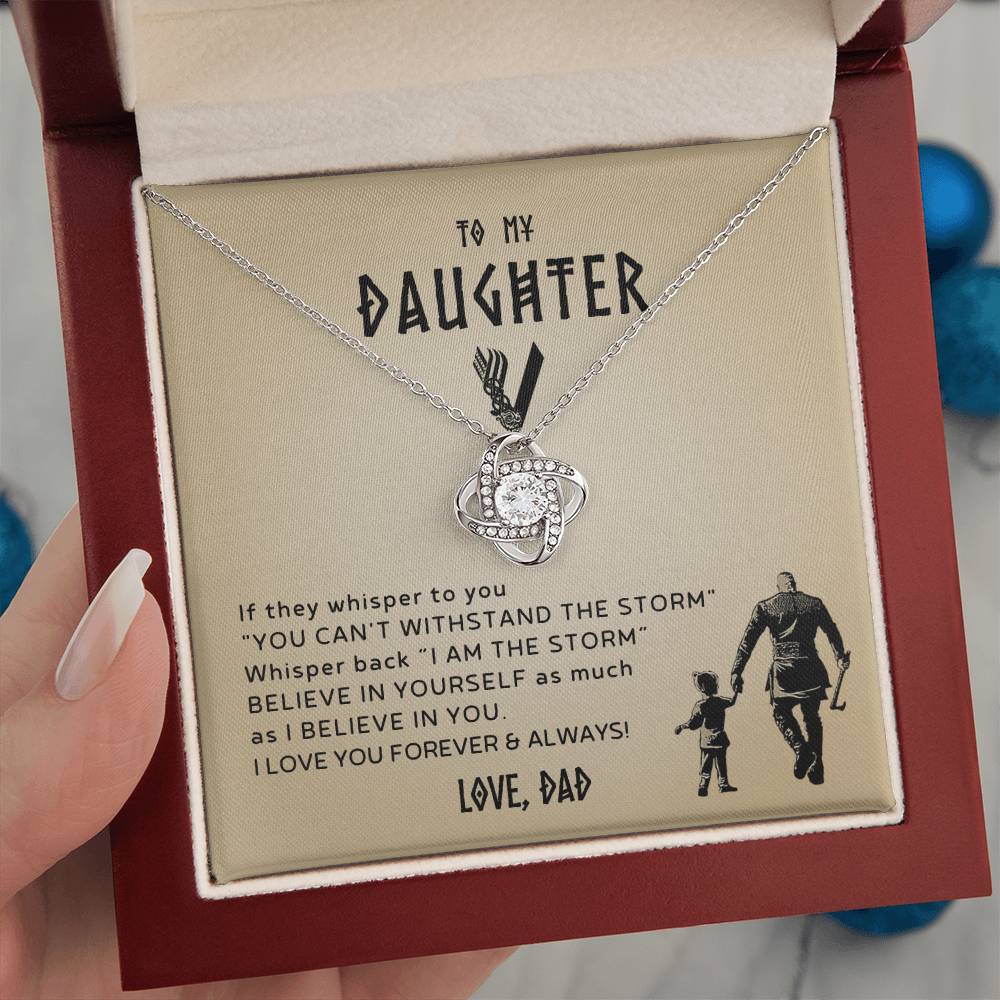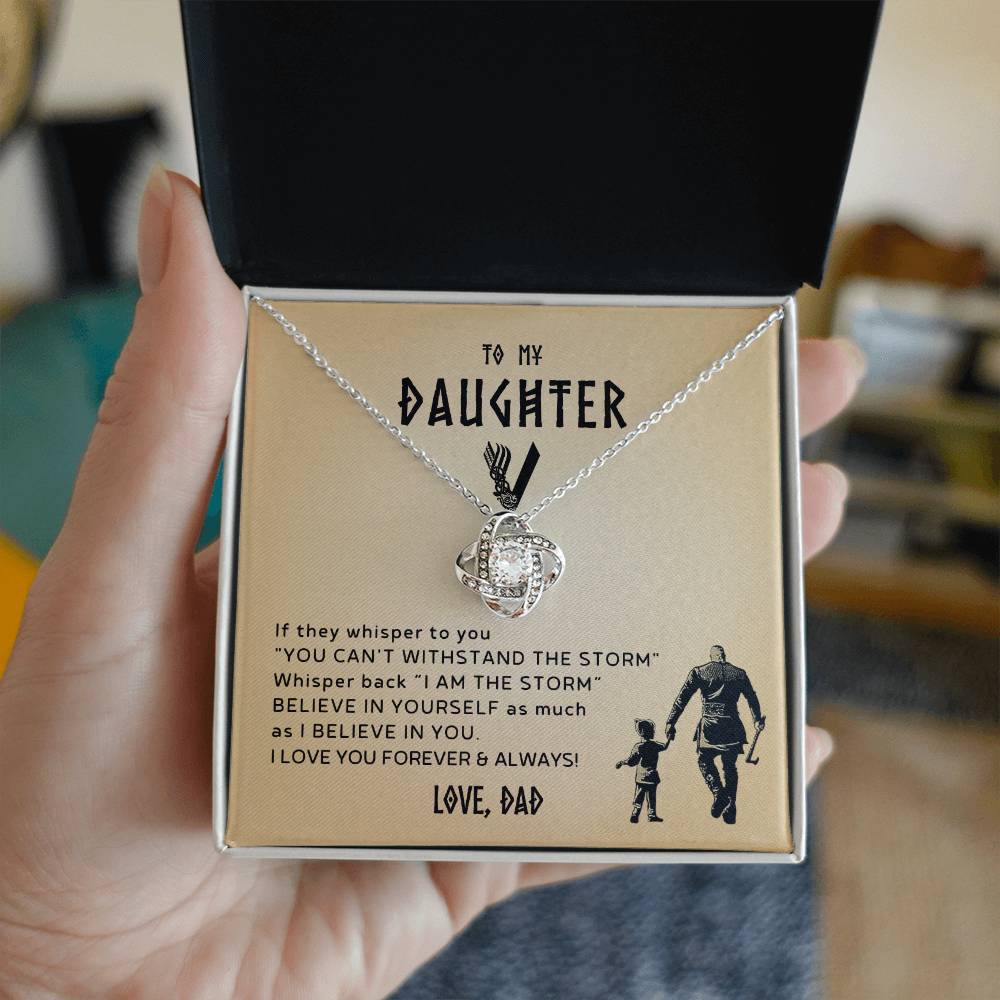Gift For Daughter From Dad - I Am The Storm - Viking - Love Knot Necklace
