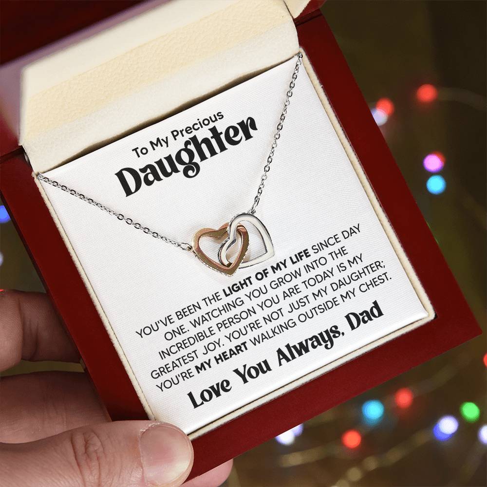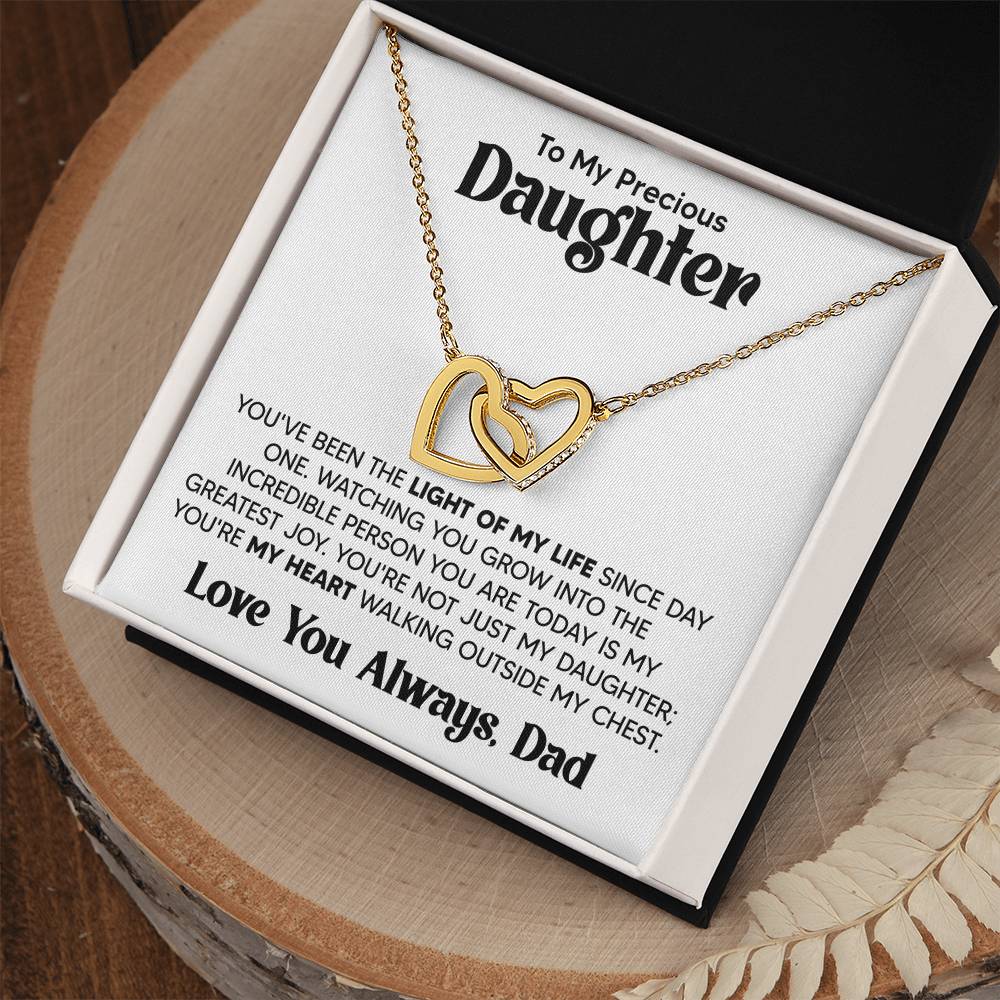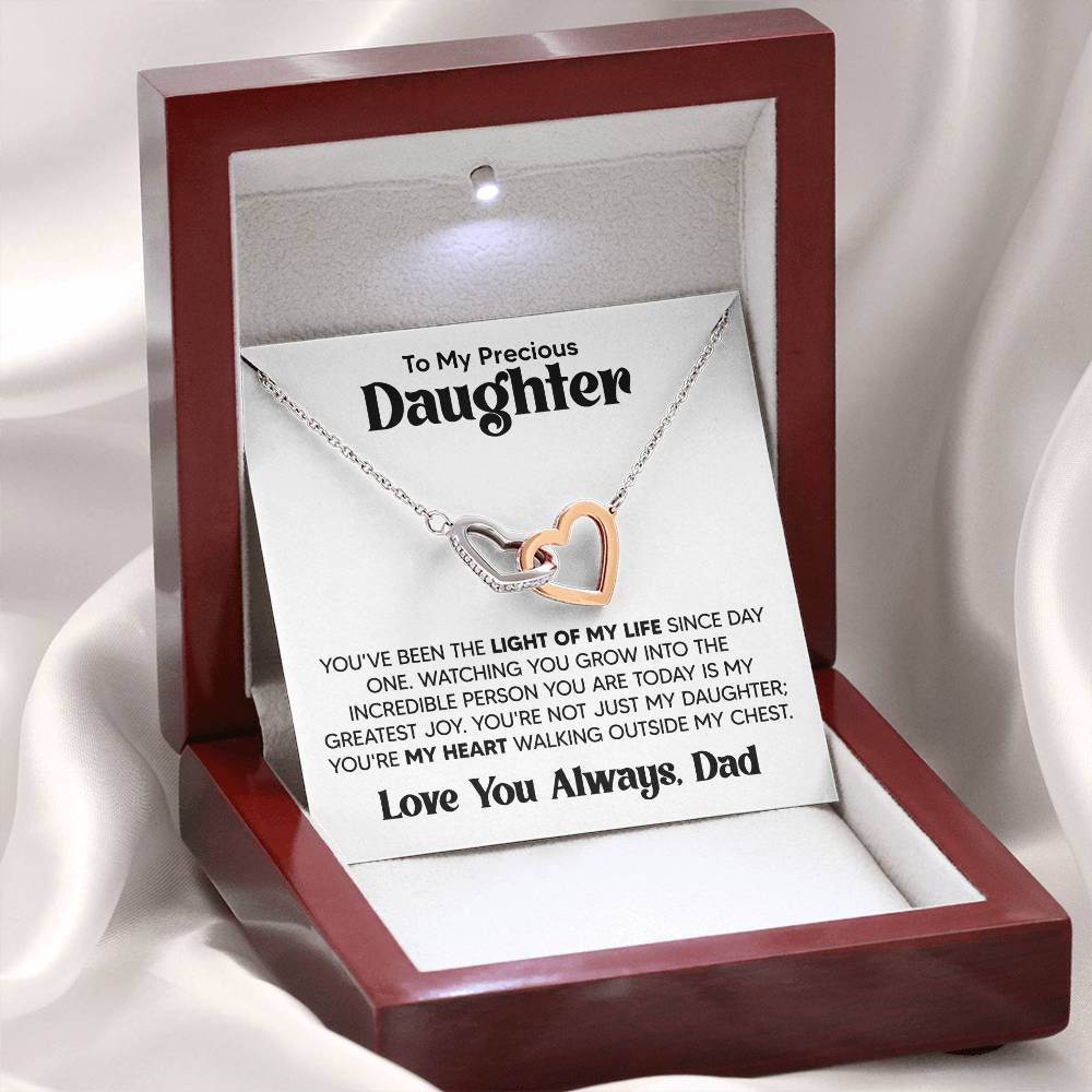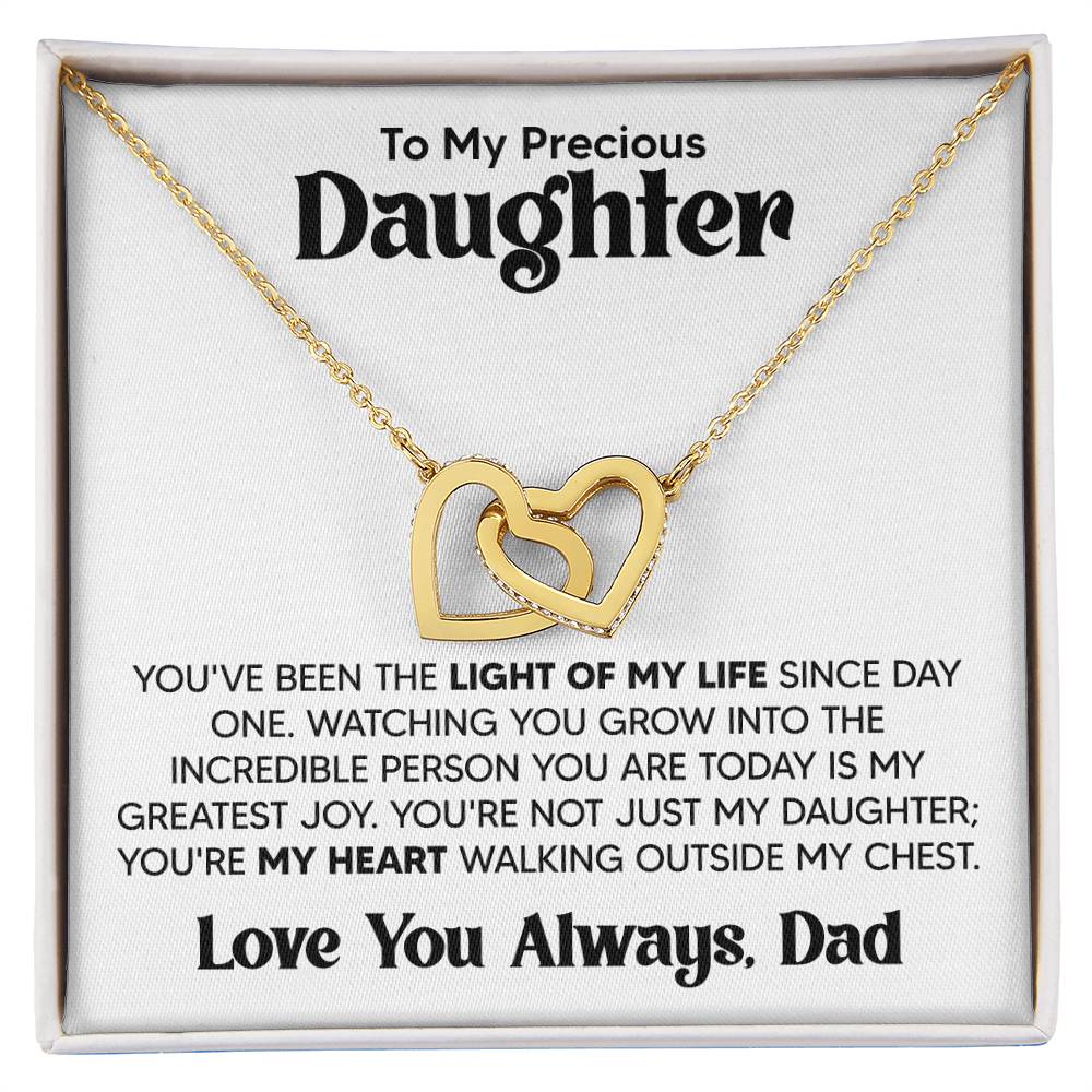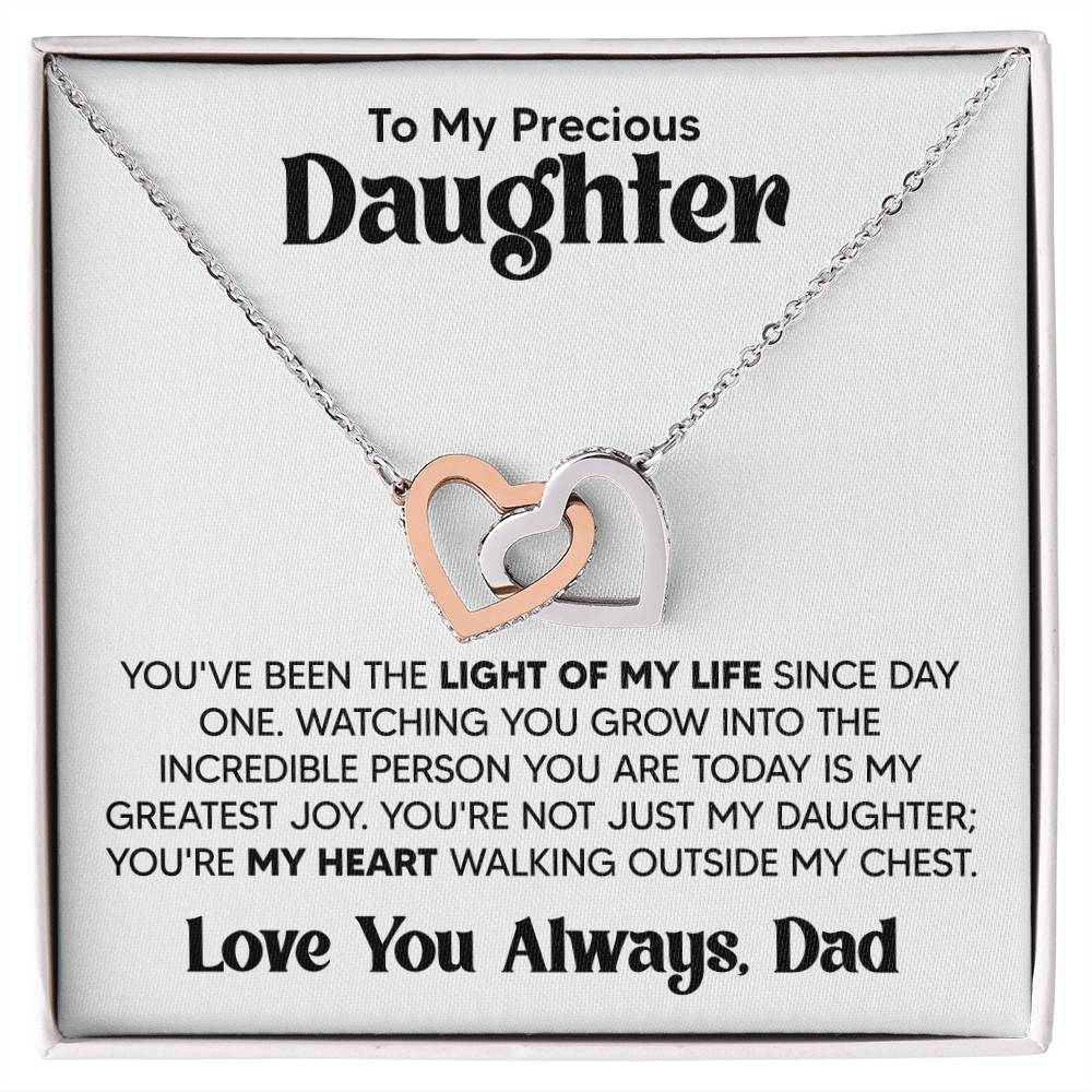 Gift For Daughter From Dad - Light of My Life - Interlocking Hearts Necklace