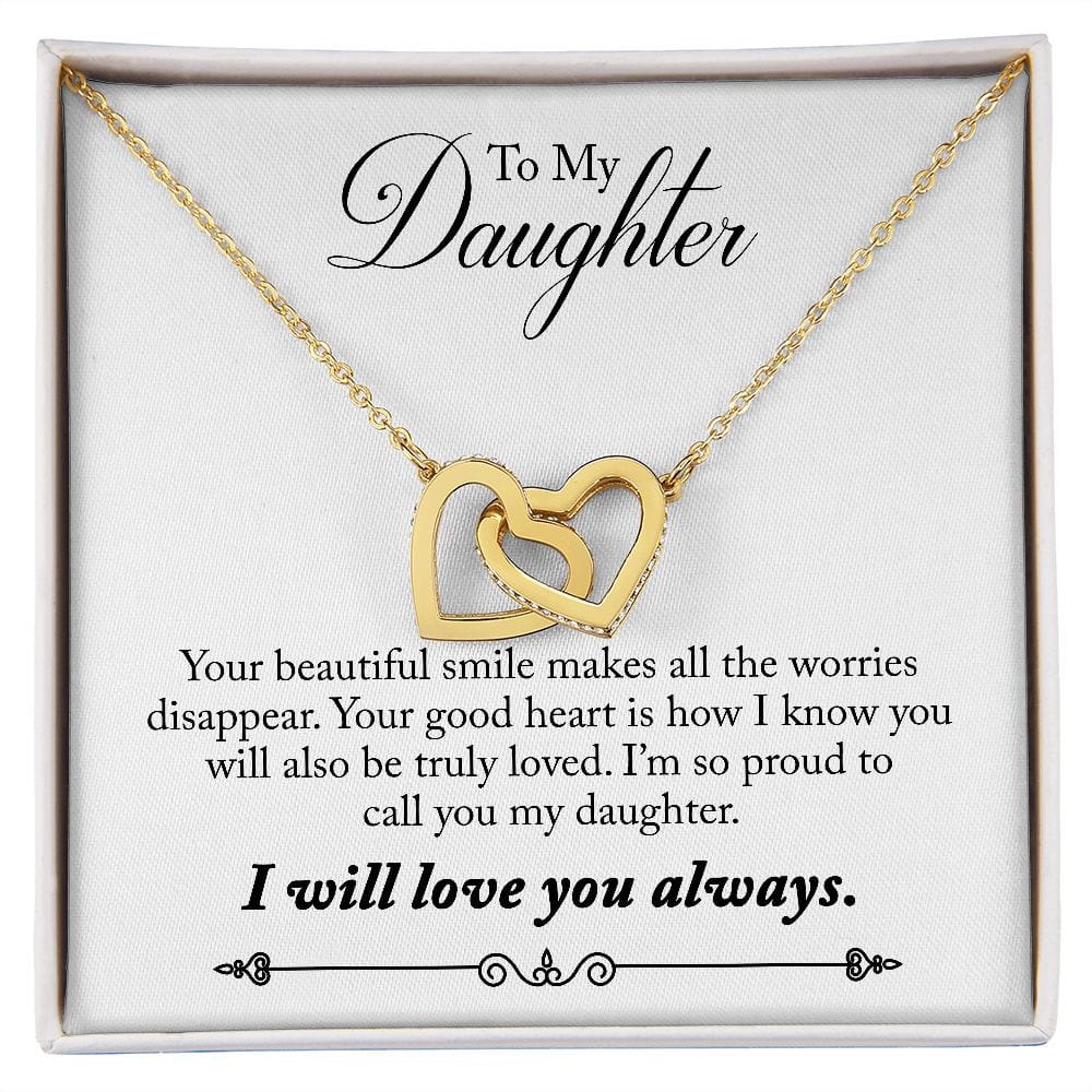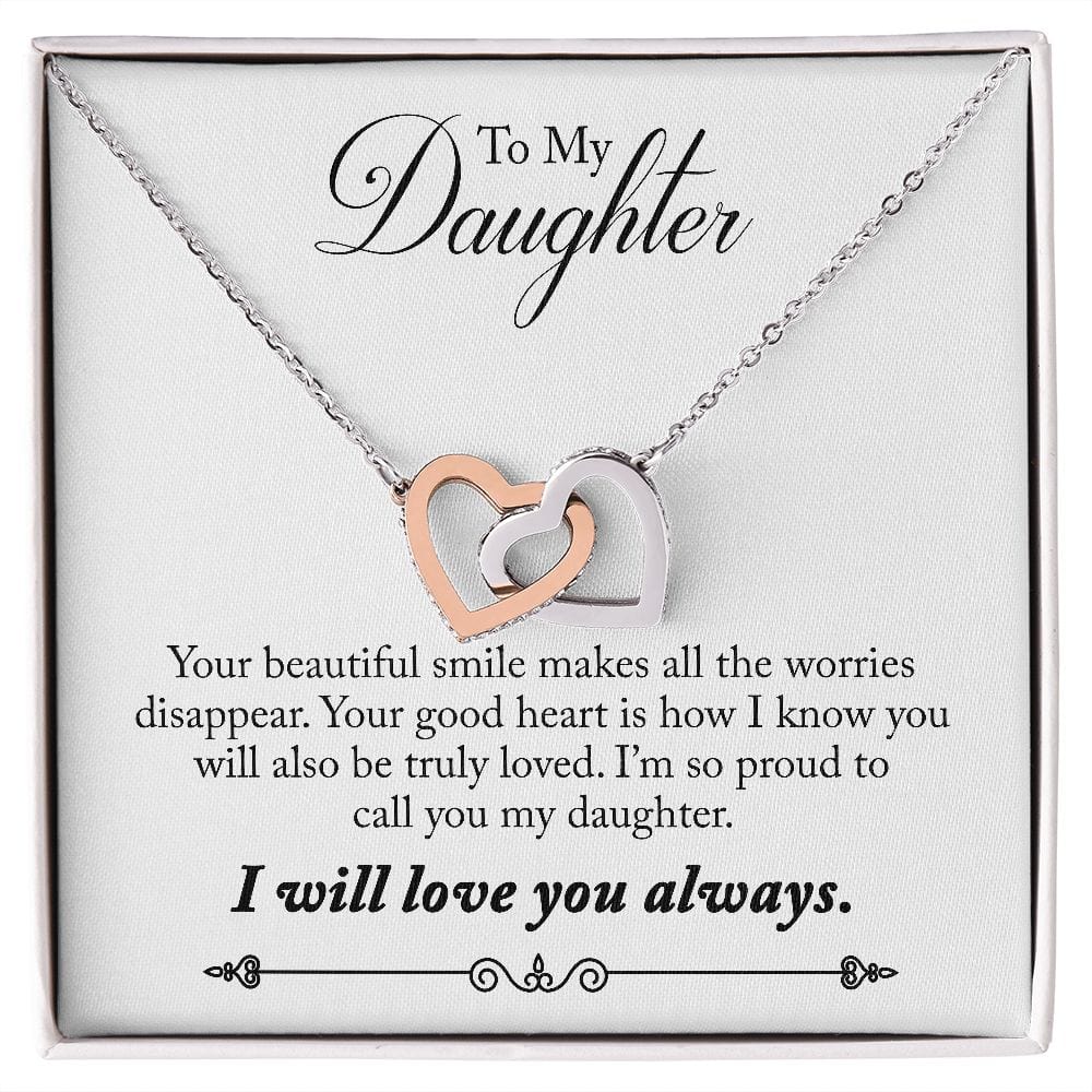 Gift For Daughter - Your Smile - Interlocking Hearts Necklace Message Card - Gift For Birthday, Christmas From Dad, Mom