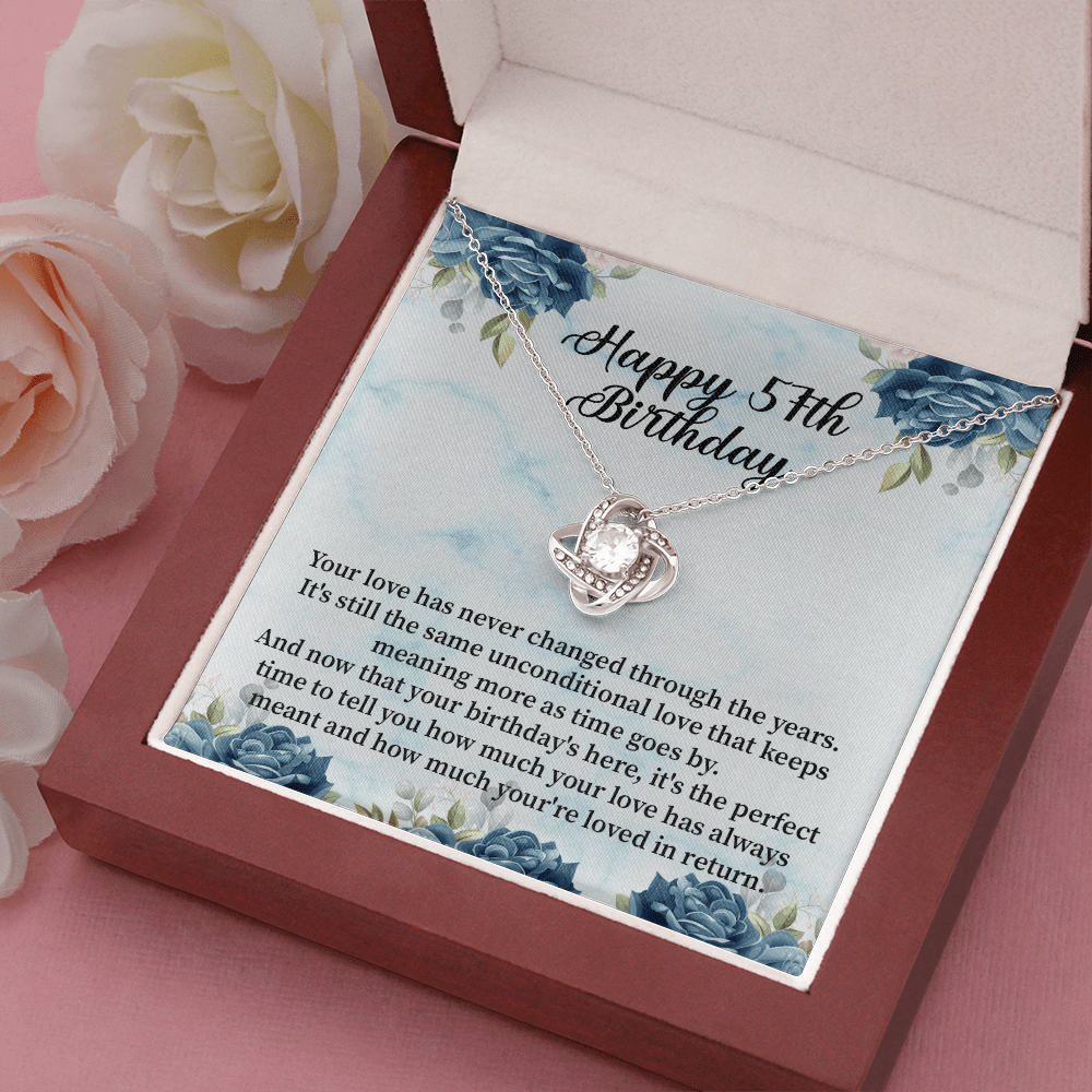 Happy 57th Birthday - Love Knot Necklace Message Card