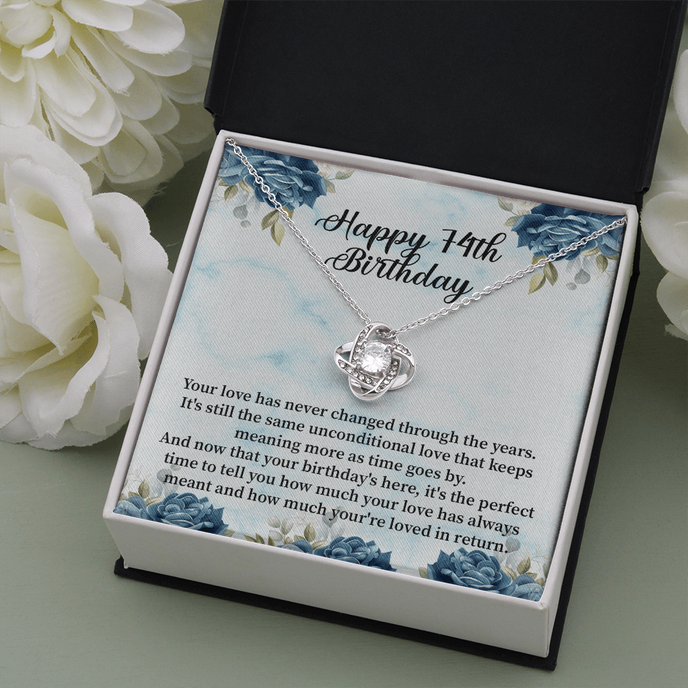 Happy 74th Birthday - Love Knot Necklace Message Card
