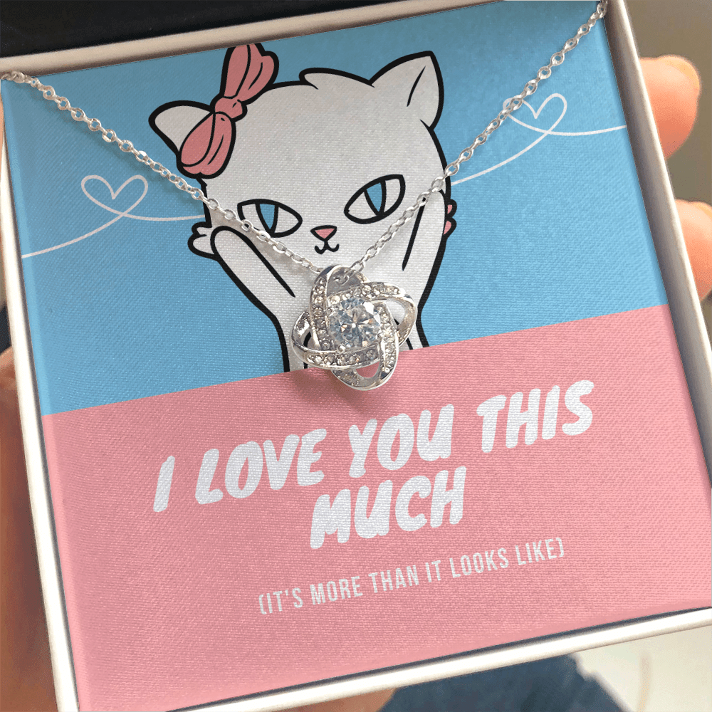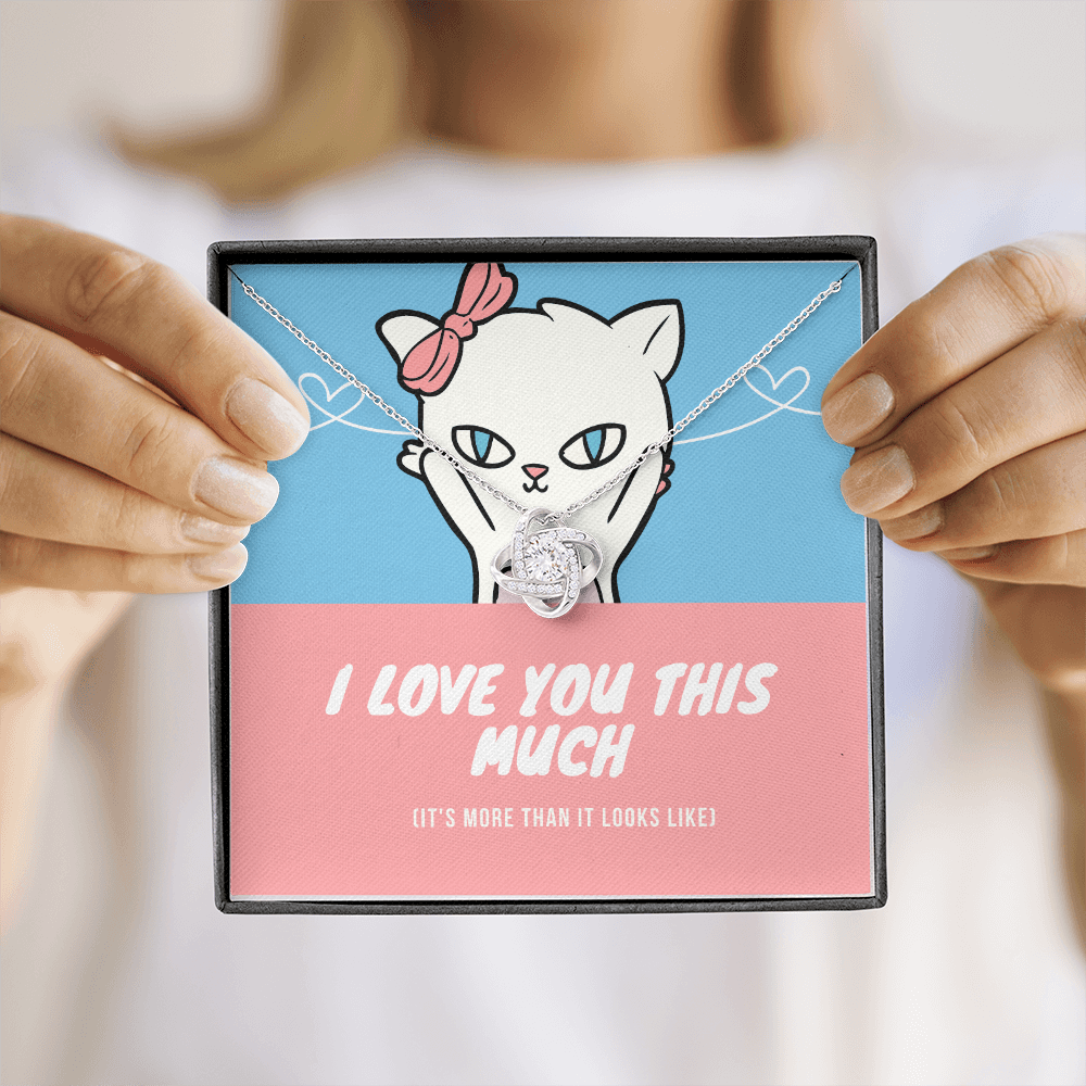 I Love You This Much Cute Cat - Love Knot Necklace Message Card