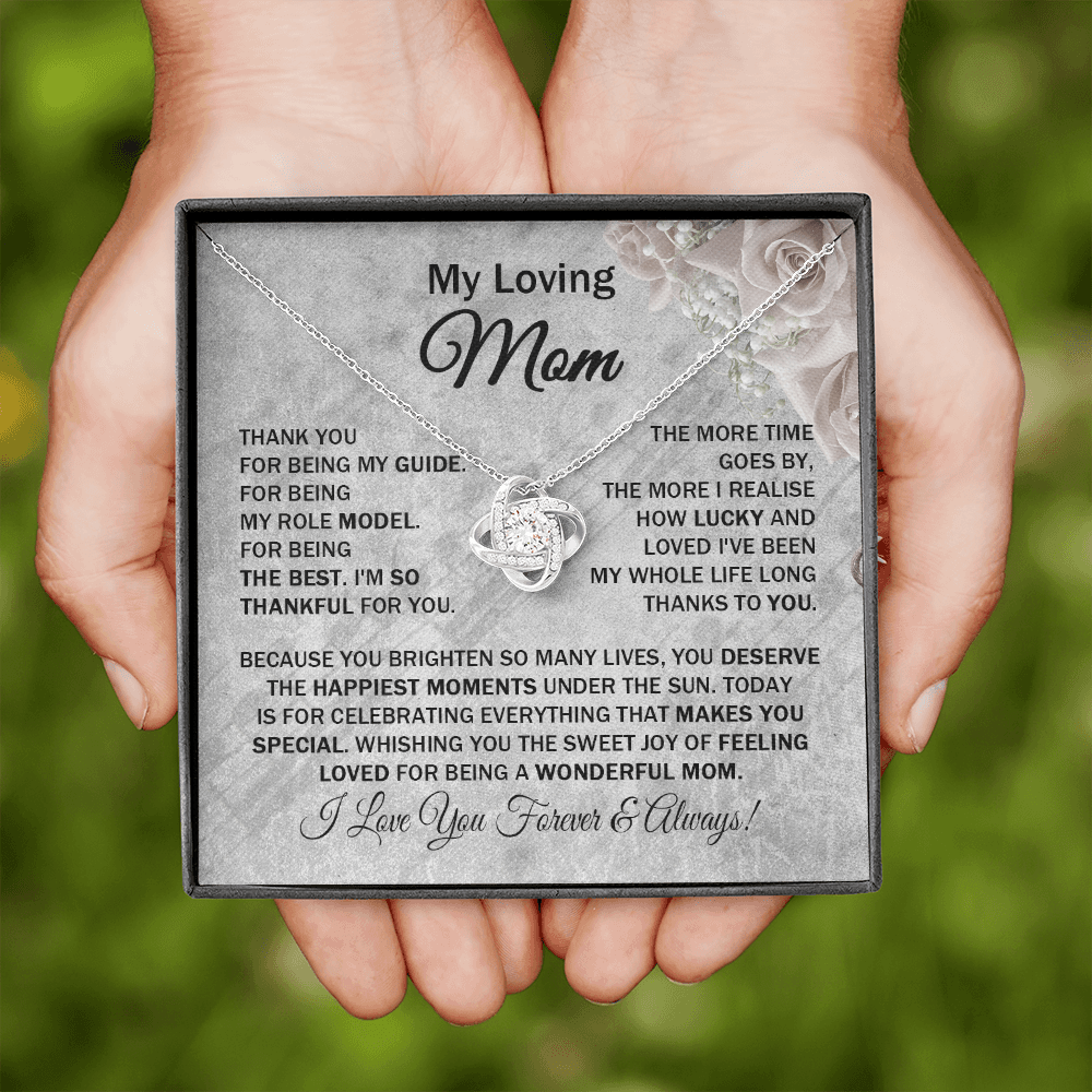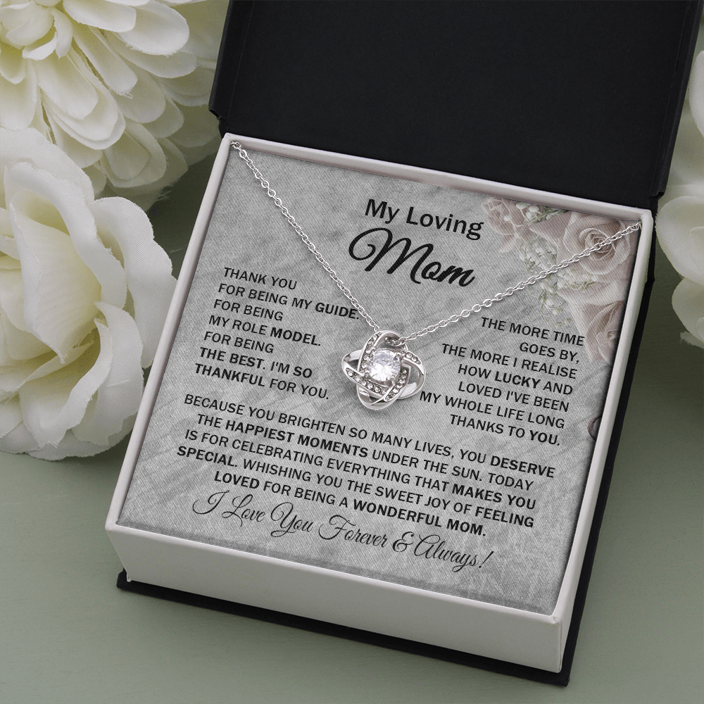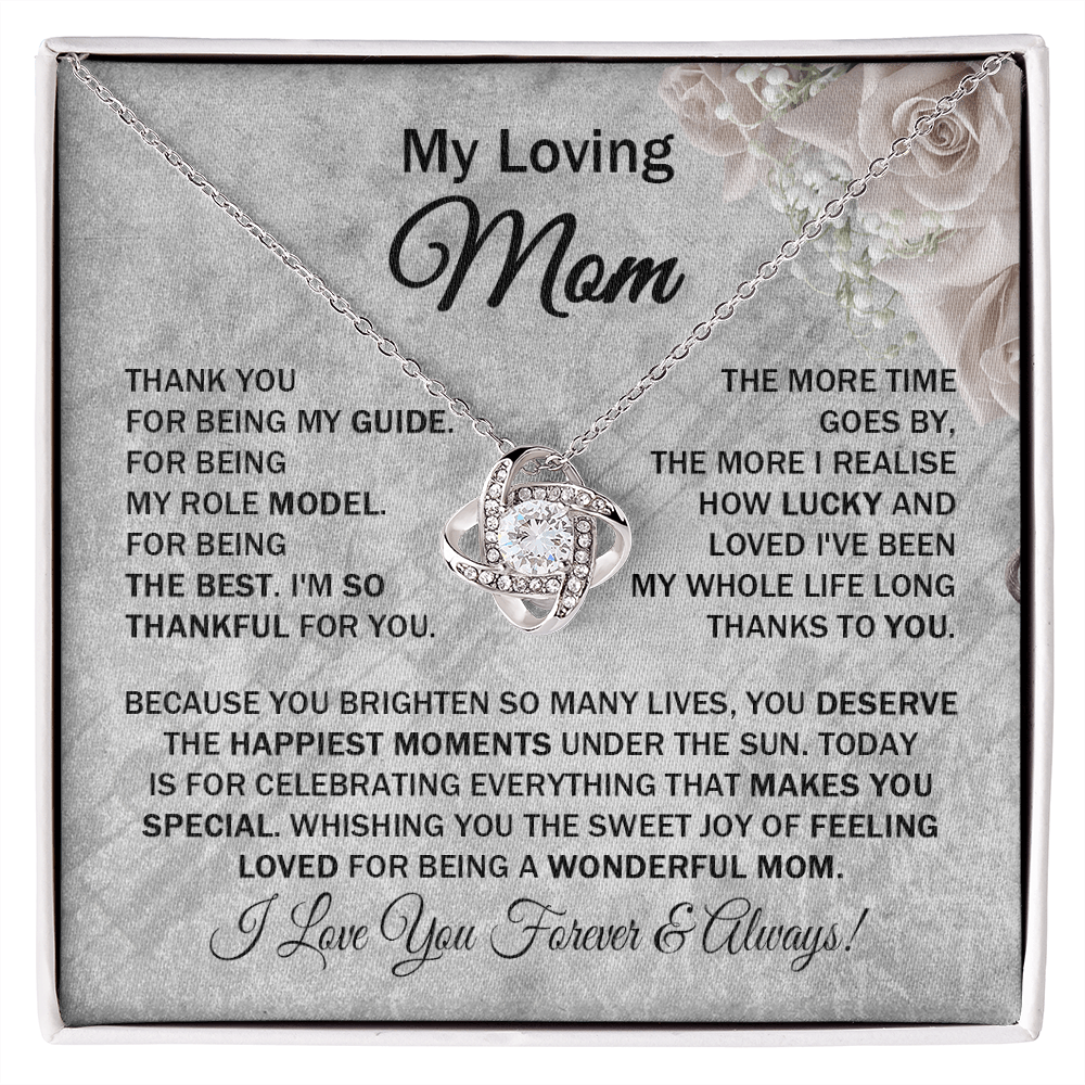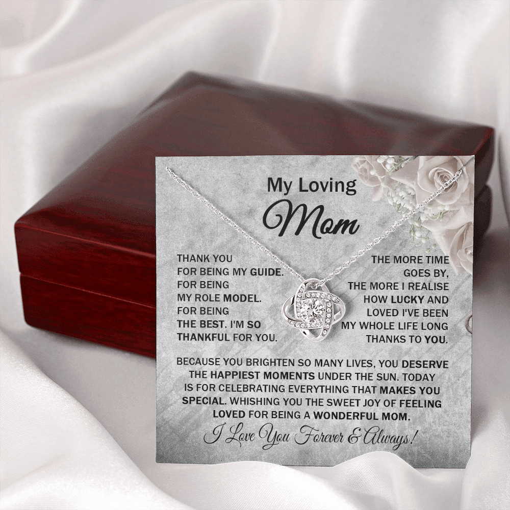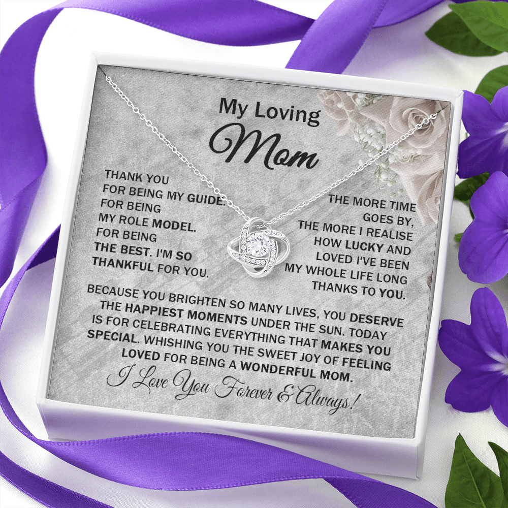 Loving Mom - Thank You for Being My Guide - Love Knot Necklace Message Card - Lovely Gift for Mom Mother's Day Birthday from Daughter Son